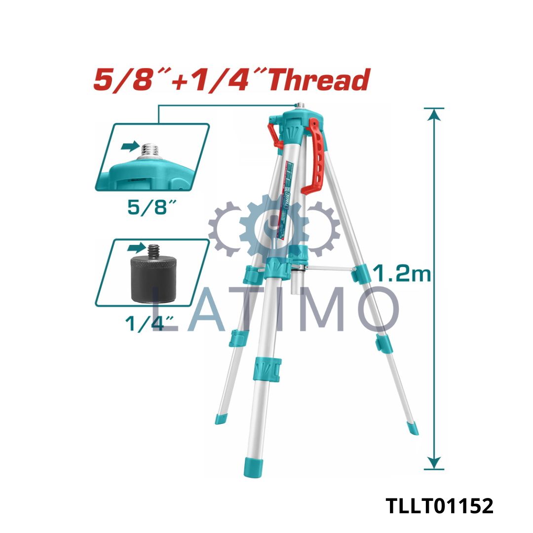 Le trépied pour niveau laser TLLT01152 est un support en aluminium léger de 1,2 mètre, adapté aux niveaux laser TOTAL tels que TLL156508, TLL306505 et TLL305205. Avec ses filetages 5/8″ et 1/4″, il offre une compatibilité universelle. Stable et pratique, il est idéal pour les travaux de précision. En Tunisie, il est apprécié pour son rapport qualité/prix.