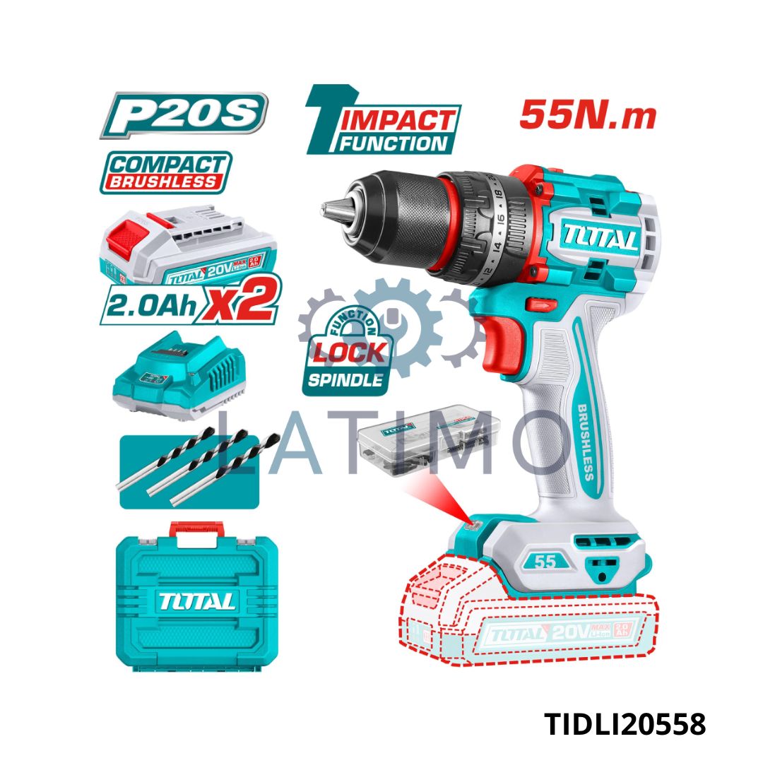 TOTAL Visseuse perceuse 55nm mandrin metal a/2b TIDLI20558
